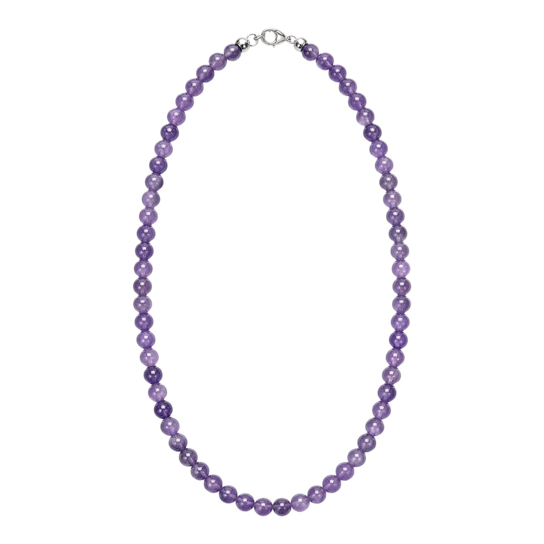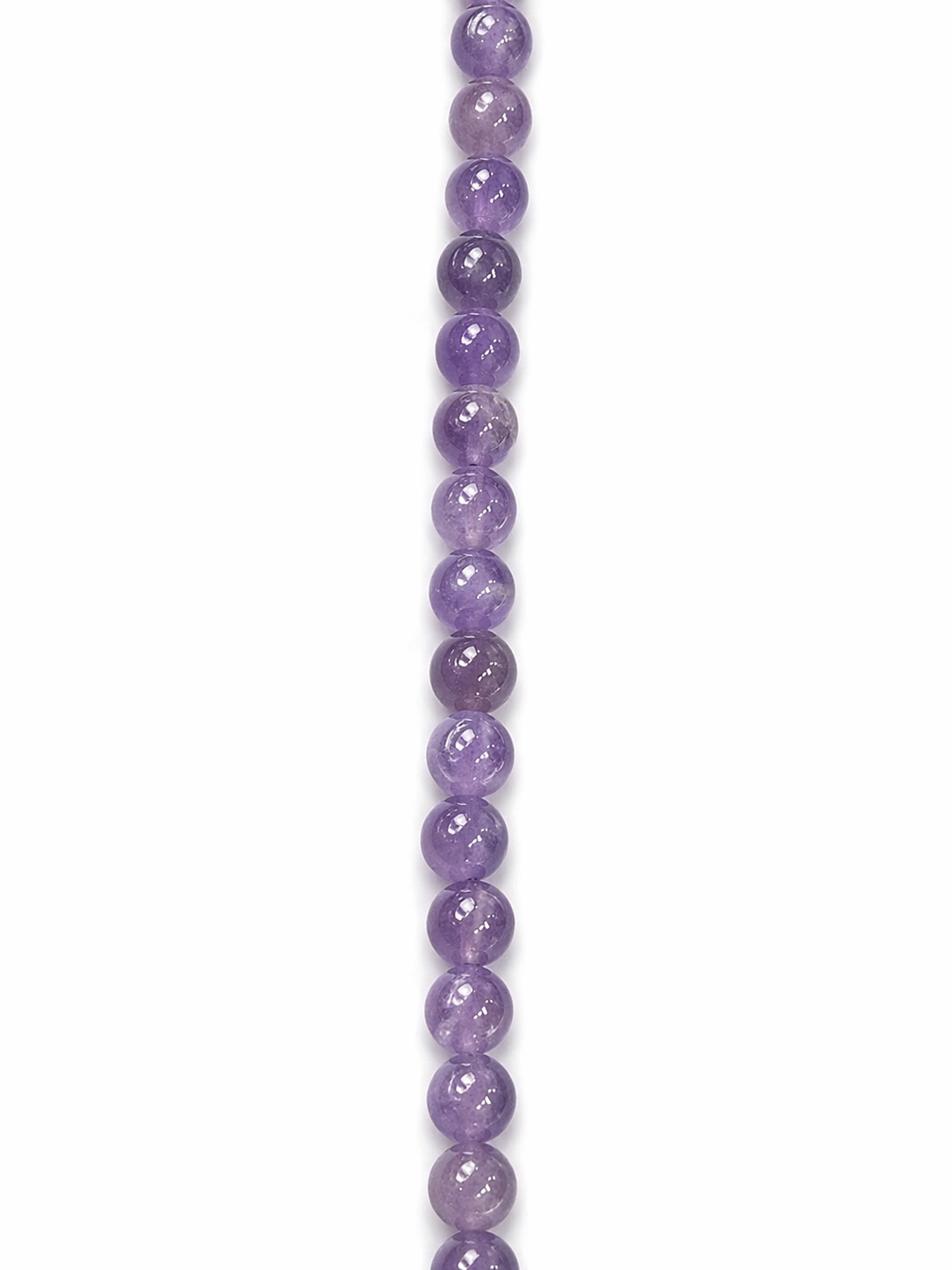 A classic strand of polished amethyst beads. The smooth, rounded beads reflect light softly, revealing depth in colour from lavender to deeper purple hues.