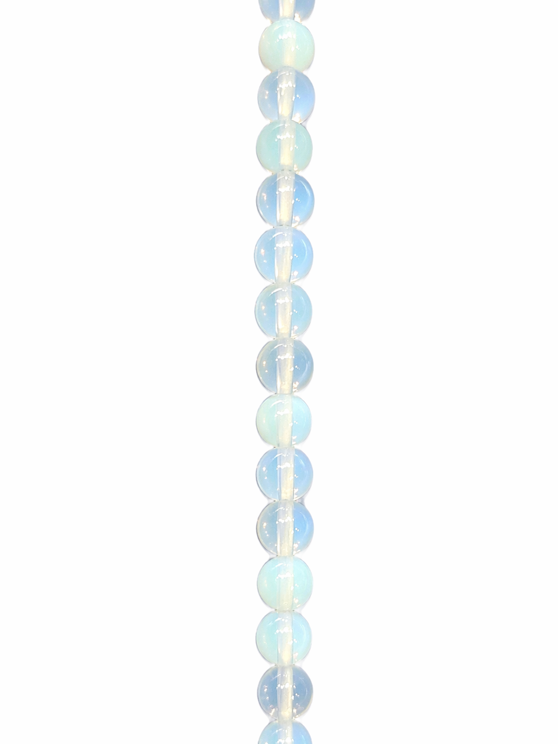 A soft, luminous necklace featuring polished opalite beads paired with a smooth teardrop pendant. The milky blue tones catch the light beautifully, shifting between subtle hues and giving the piece a gentle glow.