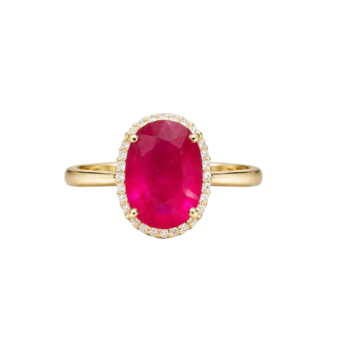 The diamonds add  shimmer, while the smooth gold band keeps the design refined and wearable. The elevated setting allows light to flow through the ruby, bringing out its depth of colour and natural character.