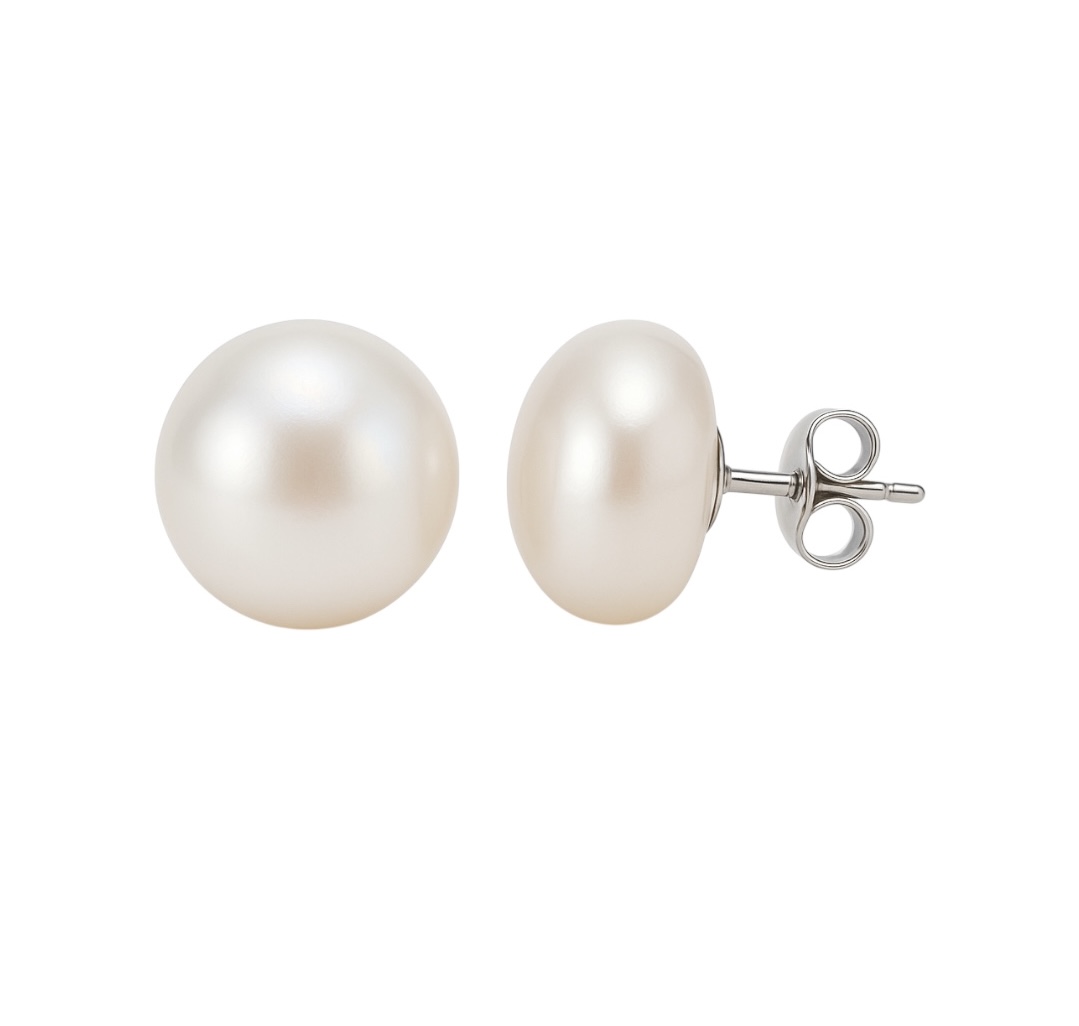 Freshwater Pearl Stud Earrings – 11mm, Sterling Silver