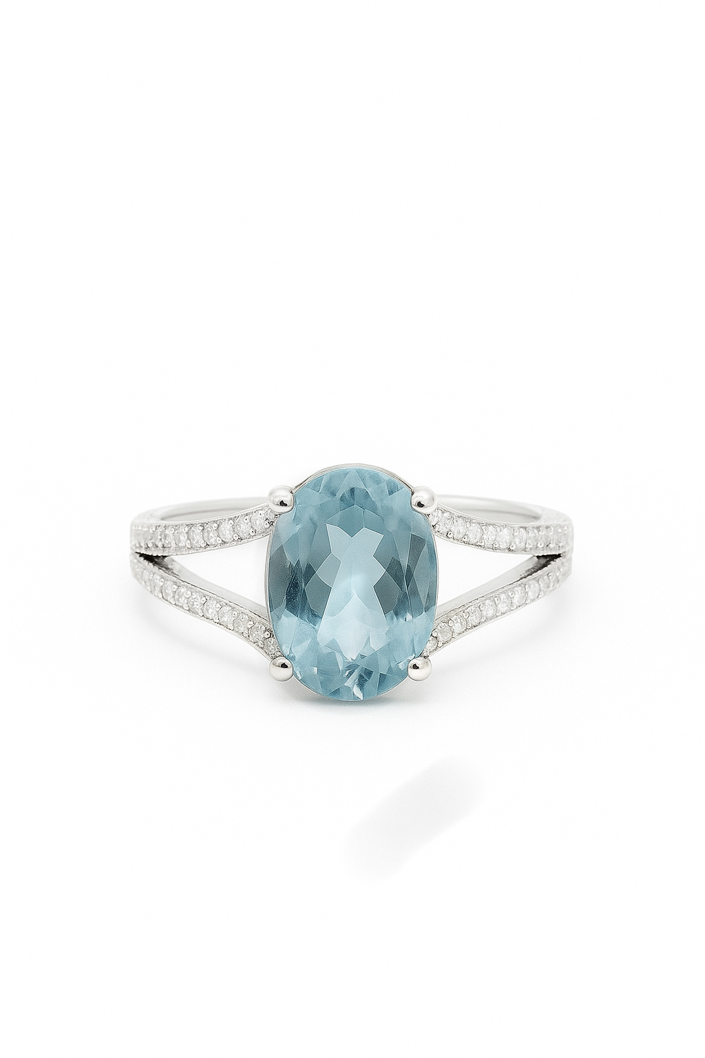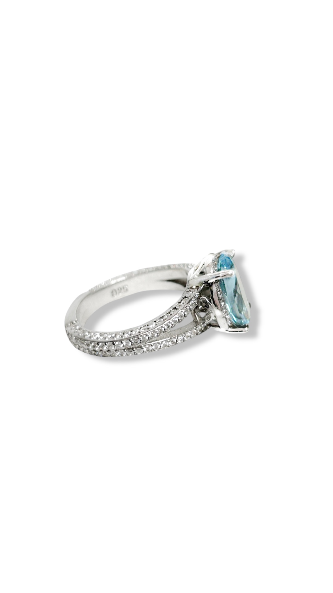 Sterling silver 925 Aquamarine ring with cubic zirconias . Size 7. 12mm x 8mm stone.