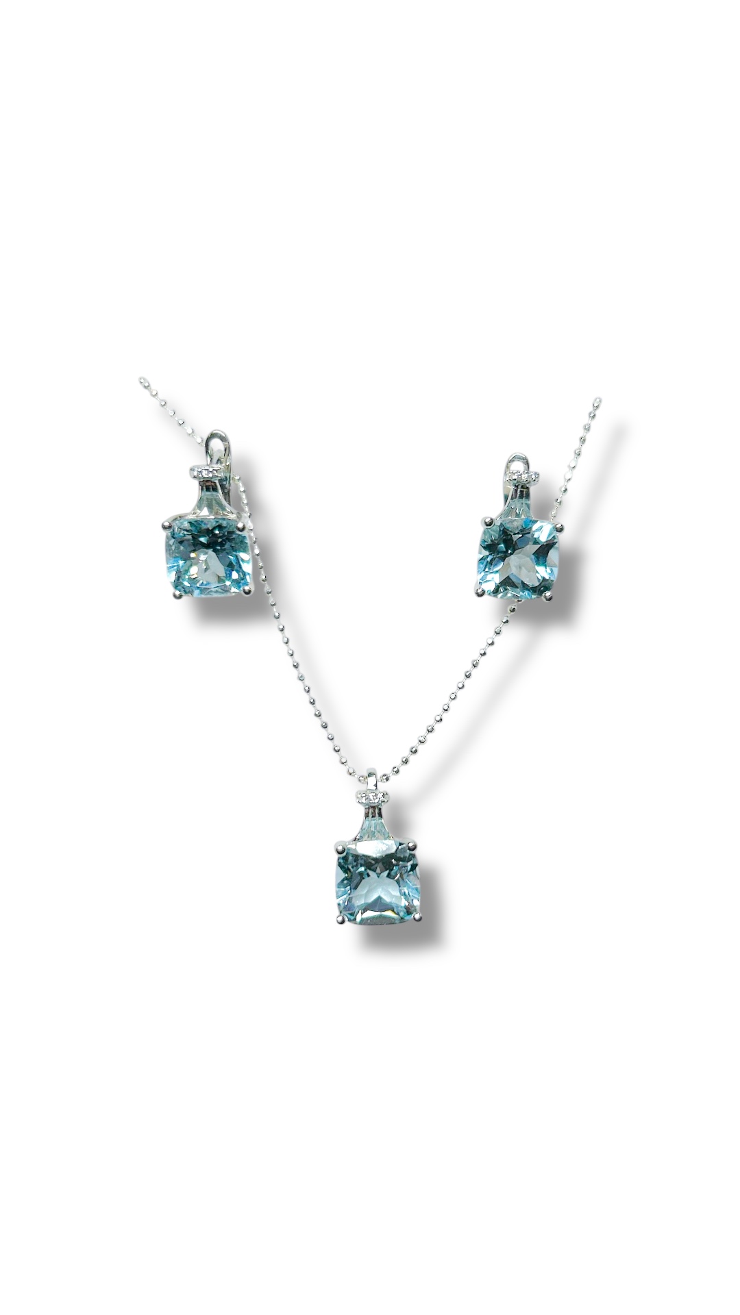 Natural Blue topaz set. Sterling silver 925. 9x9 stones. 39cm chain.