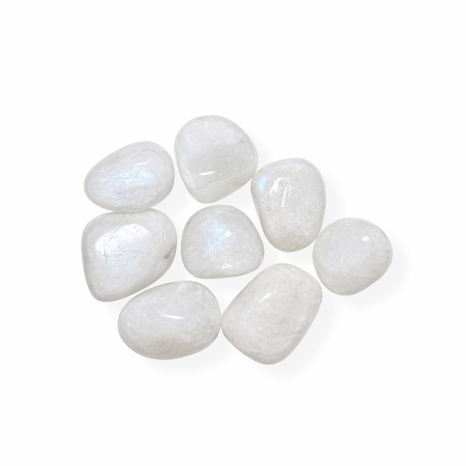 A soft and luminous selection of polished moonstone tumbles. Each piece has a smooth rounded finish, making them lovely for crystal collections, display bowls, gifting, or carrying as a pocket stone.